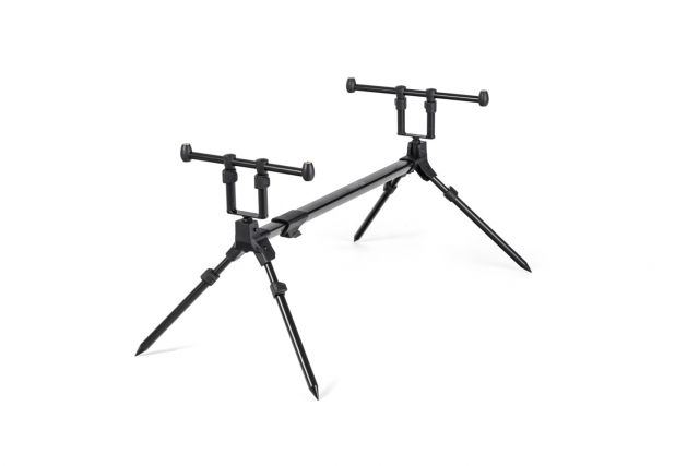Kompaktní, lehký a dokonale stabilní stojan na pruty s unikátním systémem rychlého skládání. Nepotřebujete žádné šrouby. Rozložení všech částí, nastavení délky či vyklopení teleskopických noh je otázkou několika vteřin. Vše je řešeno unikátním systémem na zacvaknutí. Stojan je vybaven hrazdami na dva pruty s nastavitelnou výškou. Nastavit můžete i délku stojanu a samozřejmě i délku teleskopických noh. Stojan je ideální pro lov s krátkými stalkerovými pruty. V případě potřeby je možné stojan osadit hrazdami na tři pruty, dostupnými samostatně.